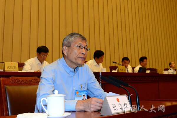 6月25日上午,十三届全国人大常委会第十一次会议举行第一次全体会议。全国人大宪法和法律委员会副主任委员胡可明作关于《<中华人民共和国土地管理法>、<中华人民共和国城市房地产管理法>修正案(草案)》修改情况的汇报。马增科摄