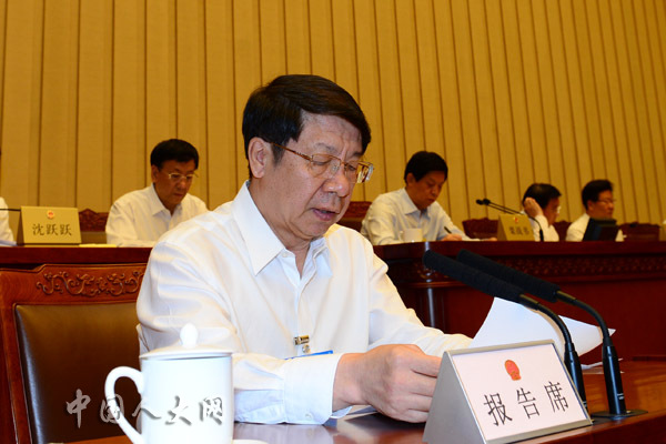6月26日下午,十三届全国人大常委会第十一次会议举行第二次全体会议。全国人大财政经济委员会副主任委员史耀斌作关于2018年中央决算草案审查结果的报告。马增科摄