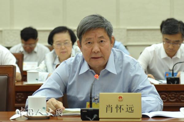 6月27日下午,十三届全国人大常委会第十一次会议举行分组会议,审议国务院关于文化产业发展工作情况的报告,全国人大常委会执法检查组关于检查《中华人民共和国中小企业促进法》实施情况的报告。图为全国人大常委会委员肖怀远在分组会上发言。中国人大网陶宏林 摄