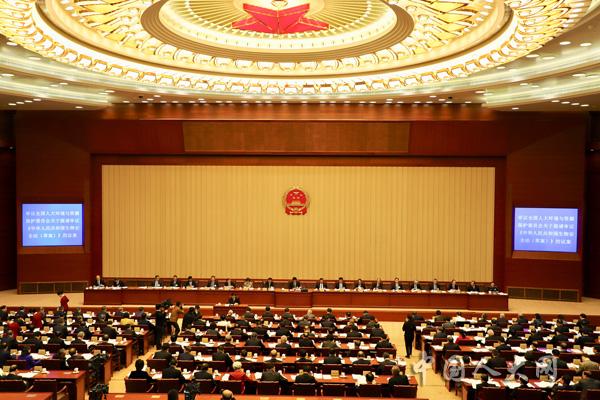 《中国人大》全媒体记者王萍10月21日北京报道:10月21日下午,十三届全国人大常委会第十四次会议第一次全体会议听取了全国人大环境与资源保护委员会主任委员高虎城所作的关于《中华人民共和国生物安全法(草案)》的说明。(摄影/王萍)