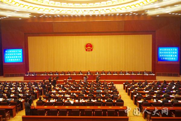 《中国人大》全媒体记者李小健 王伟10月23日北京报道:10月23日上午,十三届全国人大常委会第十四次会议举行第二次全体会议,听取国务院关于加快外贸转型升级推进贸易高质量发展工作情况的报告。受国务院委托,商务部部长钟山到会作报告。(摄影/李小健)
