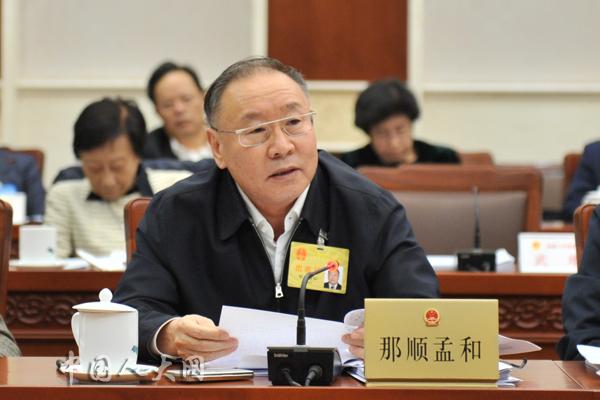 10月23日下午,十三届全国人大常委会第十四次会议举行分组会议,审议国务院关于加快外贸转型升级推进贸易高质量发展工作情况的报告,国务院关于2018年度国有资产管理情况的综合报告,国务院关于2018年度全国行政事业性国有资产管理情况的专项报告。图为全国人大常委会委员那顺孟和在分组会上发言。陶宏林 摄