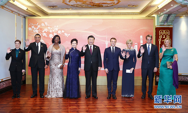晚6时许,法国总统马克龙夫妇、牙买加总理霍尔尼斯夫妇、希腊总理米佐塔基斯夫妇、塞尔维亚总理布尔纳比奇等外方贵宾陆续抵达。习近平和彭丽媛同他们亲切交流并合影留念。