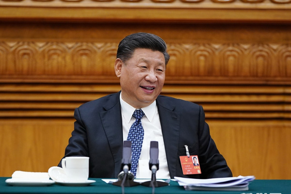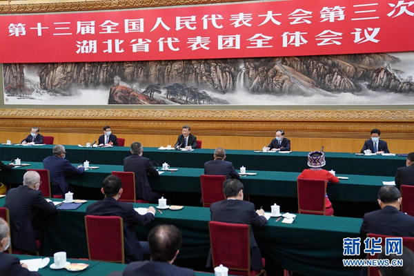5月24日,中共中央总书记、国家主席、中央军委主席习近平参加十三届全国人大三次会议湖北代表团的审议。新华社记者 李学仁 摄