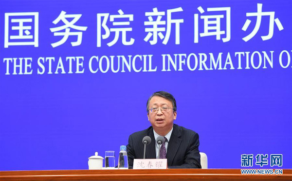 7月1日,国务院新闻办公室在北京举行新闻发布会,请全国人大常委会法工委主任沈春耀和国务院港澳事务办公室分管日常工作的副主任张晓明介绍香港特别行政区维护国家安全法有关情况,并答记者问。这是沈春耀在新闻发布会上介绍情况。新华社记者 金良快 摄
