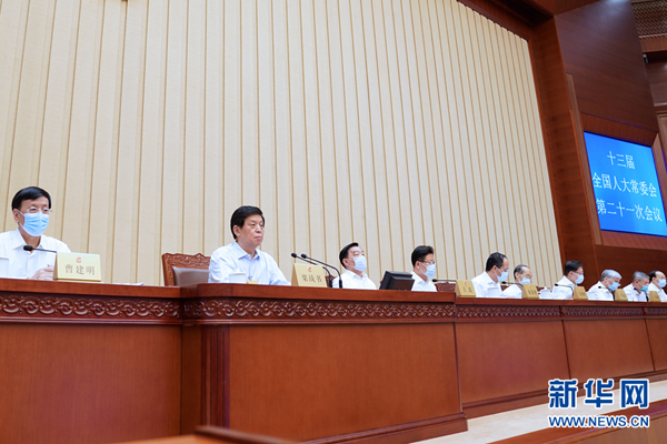 8月8日,十三届全国人大常委会第二十一次会议在北京人民大会堂举行第一次全体会议,栗战书委员长主持。 新华社记者 张领 摄
