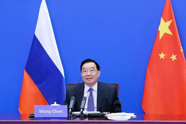 11月2日,全国人大常委会副委员长王晨在京主持中俄议会合作委员会第六次会议视频会议对话会。许麟 摄