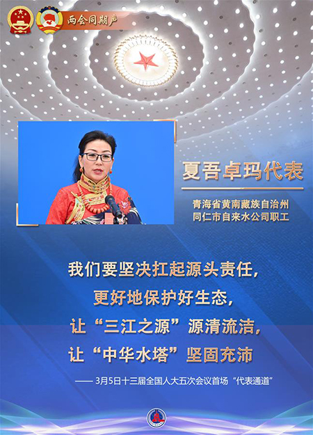 “我们呵护水,水又滋养了我们;我们是守护者,同时又是受益者。”青海省黄南藏族自治州同仁市自来水公司职工夏吾卓玛代表说,在党和政府的关心帮助下,当地解决了吃水难问题;如今,当地通过一系列举措和科技手段,努力保证“一江清水向东流”,保护生态也成为老百姓的自觉行动。