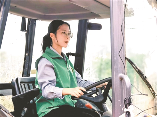沈燕芬正在驾驶农机车