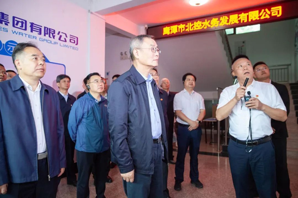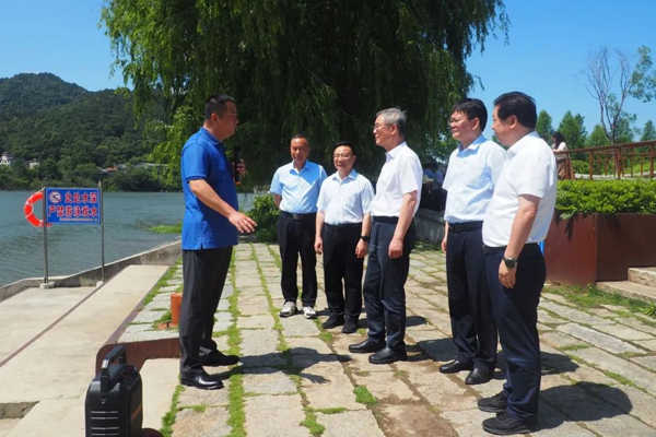 5月27至29日,民进中央主席、长江生态环境保护民主监督工作领导小组组长蔡达峰带队在江西开展考察调研。图为调研组在鹰潭市调研水环境治理、水资源节约集约利用工作情况。