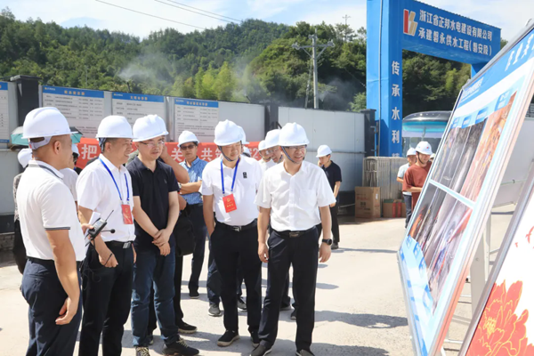 永康“七山一水二分田”,为破解水资源短缺困境,7月3日,永康市、磐安县两地人大开展磐永供水工程联合视察,实地察看了流岸水库及引水隧洞建设现场。