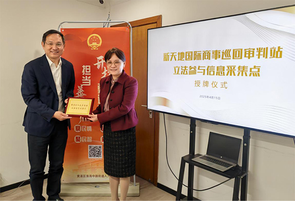 (图2-1,黄浦区人大常委会副主任姚晓红为新天地国际商事巡回审判站立法参与信息采集点授牌