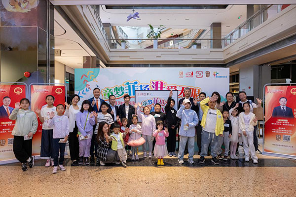 (图4,“童梦菲扬 淮爱无限”活动现场,区人大代表与现场的孩子们合影)