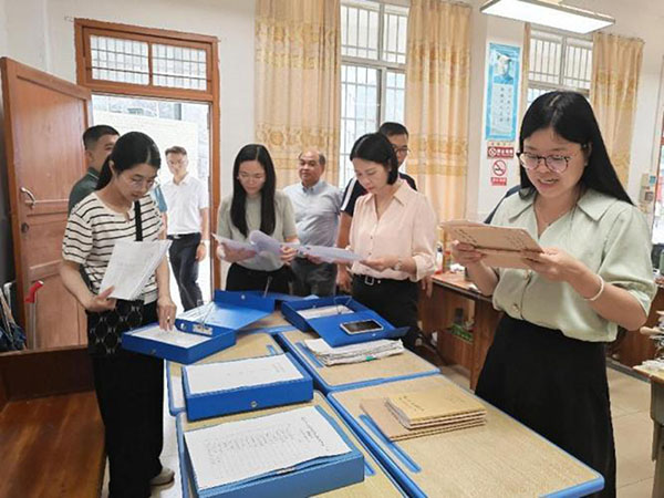 执法检查组实地查阅台账资料。通讯员刘秋华 供图