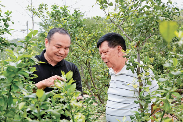 徐建贤代表(左)和农户交流种植经验。(代表供图)