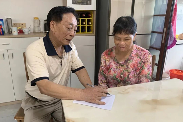 江海基层立法联系点立法意见义务收集员向社区居民收集立法意见