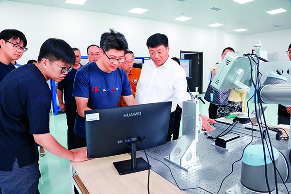 张波代表(前右一)在魏桥国科研究院调研。(代表供图)