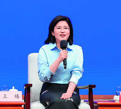 7月15日,王臻代表在国新办举行的“新征程上的奋斗者”中外记者见面会上接受采访。(代表供图)