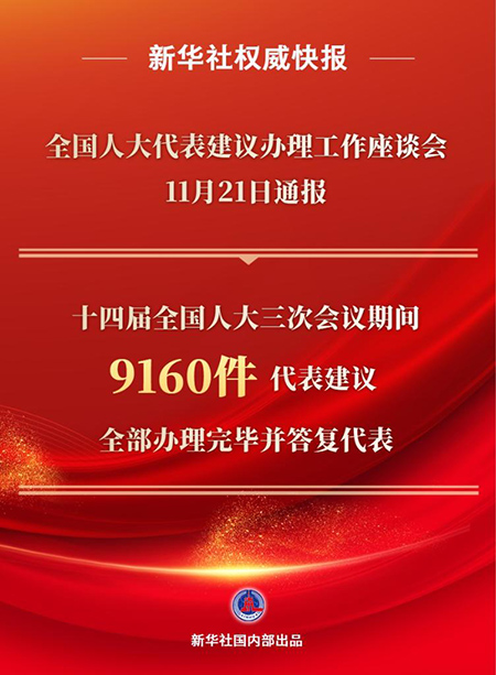 十四届全国人大三次会议9160件代表建议全部办理完毕