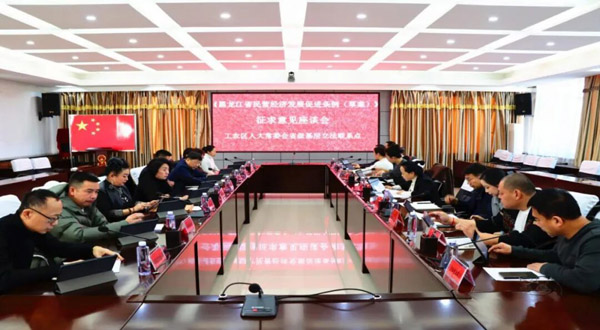 为深入践行科学立法、民主立法理念,推动法规修订精准契合民营经济发展需求,近日,鹤岗市工农区人大常委会省级基层立法联系点召开《黑龙江省民营经济发展促进条例(修订草案修改稿征求意见稿)》征求意见座谈会。鹤岗市人大常委会法工委、市人民检察院相关同志与民营经济企业代表齐聚一堂,共话发展难题、共献务实之策,为条例修订注入基层智慧,筑牢民营经济发展法治根基。