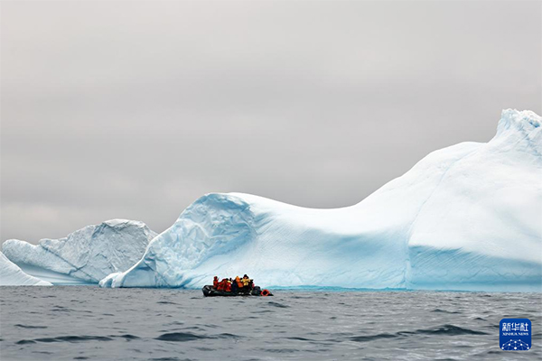 12月16日,探险者在南极洲拍摄海岸附近的冰山。新华社发(杨树摄)
