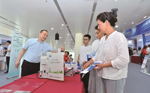2025年6月5日,安徽省人大城建环资委、省生态环境厅、合肥市人民政府联合在骆岗公园举办2025年安徽省暨合肥市纪念六五环境日和“江淮环保世纪行”启动仪式。图为市民参观了解环境噪声监测设备。安徽日报记者 程兆 摄