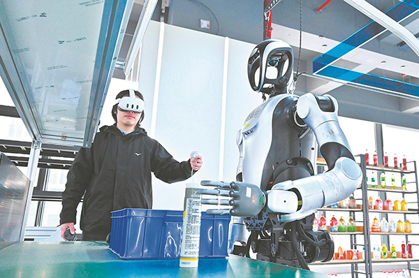 2025年12月12日,合肥市具身智能机器人数据采集预训练场,人形机器人在进行零件拣选的相关训练。安徽日报记者 程兆 摄