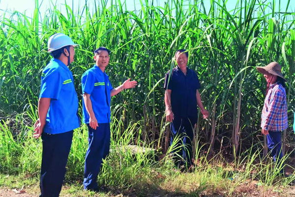 林文雄代表(左二)和工友走访蔗农。(崇左市人大常委会供图)
