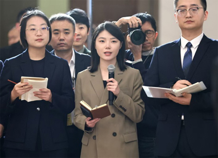 3月9日上午8时许,北京人民大会堂中央大厅北侧,十四届全国人大四次会议第二场“代表通道”开启。6位来自不同领域的全国人大代表面对记者畅谈履职心声,回应民生关切,彰显使命担当。