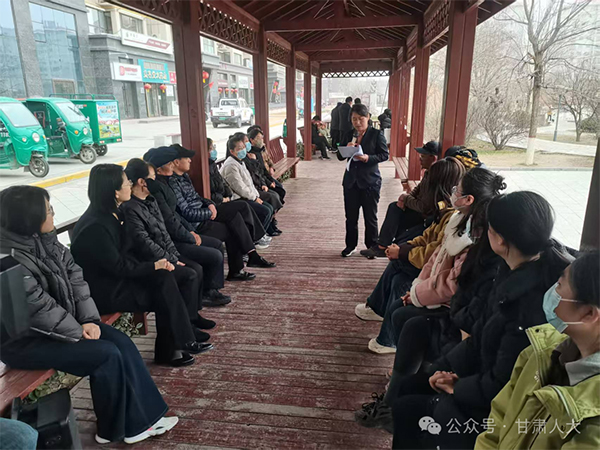 在村上宣讲结束后,马银萍顾不上休息,又来到县城西广场,轻柔的雨丝将广场冲刷得一尘不染。不少群众早早来到广场廊亭,有序就座、翘首以盼,眼神中满是对两会政策的期待和对家乡发展的关切。马银萍亲切地与群众打招呼,她用朴实直白、通俗易懂的语言,围绕全国两会核心精神,重点解读了乡村全面振兴、新型城镇化建设、民生保障改善等与群众生产生活息息相关的政策举措,让现场群众在轻松的氛围中听懂两会政策。