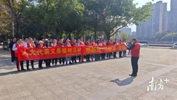 在沙凤村,白云区人大代表周淑英同样积极发挥代表作用。3月12日植树节当天,主动发起“我在白云有棵树 共建宜居好家园”植树活动,联动村社、企业代表等多方力量,在巨和智慧产业园旁携手植绿。“园区是企业集聚地,环境好了,企业才愿意来、人才才愿意留。”周淑英代表一边植树,一边向企业代表了解园区发展需求,收集优化营商环境的意见建议。在她的带动下,大家分工协作,新栽的树苗在鹅卵水库边迎风挺立,成为园区一道新的风景线。