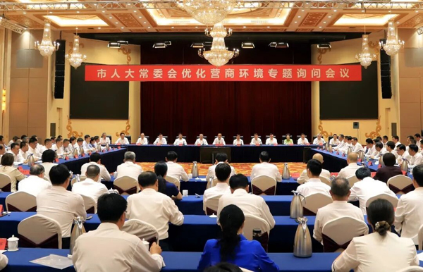 潍坊市人大常委会聚焦营商环境连续第三年开展专题询问,坚持“八措闭环”,做实“四督联动”,精准助力打通堵点、突破难点、提升亮点,为加快建设更好潍坊注入强劲动能。图为2025年6月,市人大常委会优化营商环境专题询问会议现场。