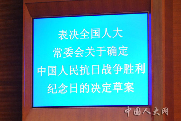 表决全国人大常委会关于确定中国人民抗日战争胜利纪念日的决定草案