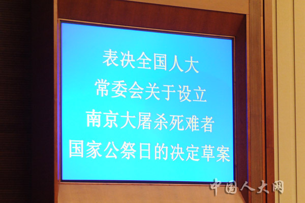 表决全国人大常委会关于设立南京大屠杀死难者国家公祭日的决定草案