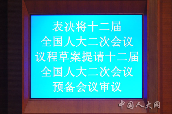 表决将十二届全国人大二次会议议程草案提请十二届全国人大二次会议预备会议审议