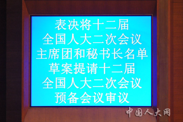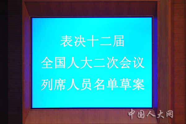 表决将十二届全国人大二次会议主席团和秘书长名单草案提请十二届全国人大二次会议预备会议审议
