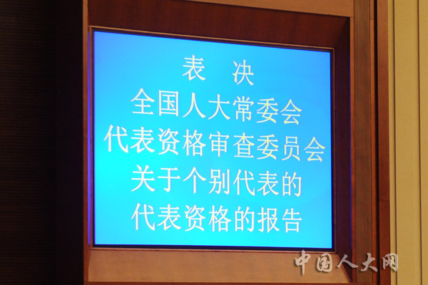 表决全国人大常委会代表资格审查委员会关于个别代表的代表资格的报告