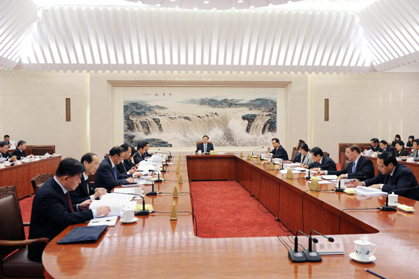 4月14日上午,十二届全国人大常委会第二十一次委员长会议在北京人民大会堂举行。全国人大常委会委员长张德江主持会议。中国人大网 李杰 摄