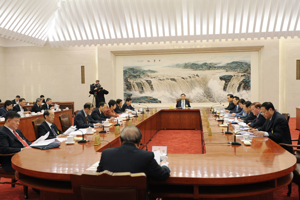 4月23日,十二届全国人大常委会第四十六次委员长会议在北京人民大会堂举行,张德江委员长主持。 中国人大网 李杰 摄