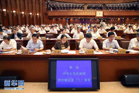 会议表决通过刑法修正案(九)、新修订的大气污染防治法等五个法律案