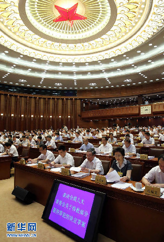 8月29日,十二届全国人大常委会第十六次会议在北京人民大会堂闭幕。张德江委员长主持会议。 新华社记者 刘卫兵 摄