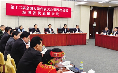 3月5日,海南代表团在住地举行全体会议,审议李克强总理所作的政府工作报告。 本报特派记者 王凯 摄
