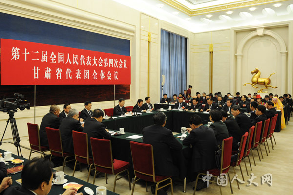 3月8日上午,十二届全国人大四次会议甘肃代表团举行全体会议。中国人大网 李杰 摄