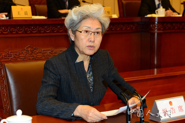 10月27日上午,十二届全国人大常委会第十一次会议举行第一次全体会议,全国人大外事委员会主任委员傅莹作关于第十二届全国人民代表大会第二次会议主席团交付审议的代表提出的议案审议结果的报告。中国人大网 李杰 摄