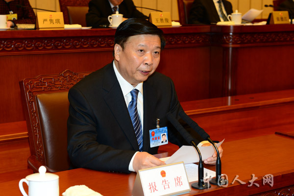 2月25日下午,十二届全国人大常委会第十三次会议举行第一次全体会议,受国务院委托,国土资源部部长姜大明作关于授权国务院在北京市大兴区等33个试点县(市、区)行政区域暂时调整实施有关法律规定的决定草案的说明。马增科 摄