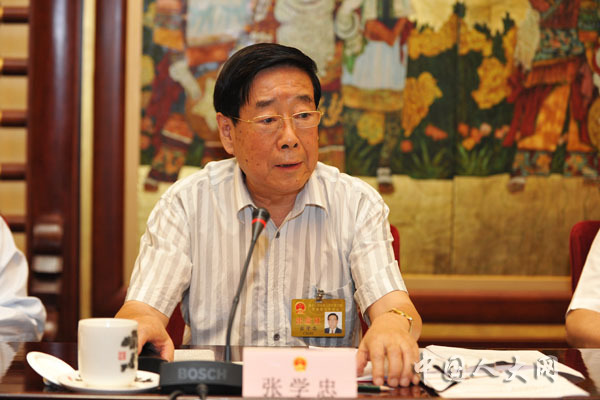 6月29日下午,十一届全国人大常委会第二十一次会议举行分组会,分组审议全国人大常委会执法检查组关于检查《中华人民共和国食品安全法》实施情况的报告。图为全国人大常委会委员张学忠在分组会上发言。中国人大网 李杰 摄