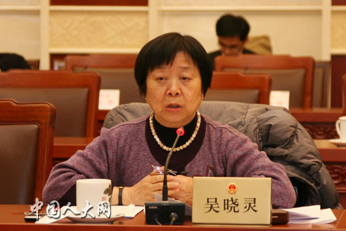 12月27日下午,十一届全国人大常委会第三十次会议举行分组会议,审议商标法修正案草案、土地管理法修正案草案。图为全国人大常委会委员吴晓灵在分组会上发言。中国人大网 包瓴瓴 摄