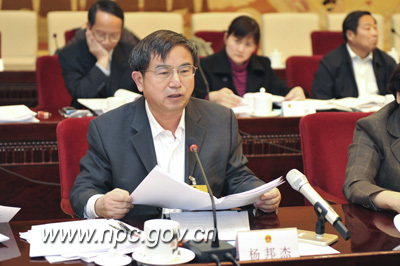 杨邦杰委员在十一届全国人大常委会第六次会议分组会上发言