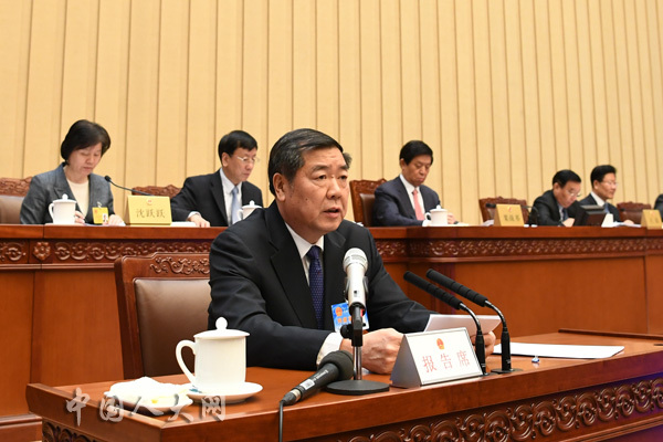 何毅亭作关于第十三届全国人民代表大会第一次会议主席团...