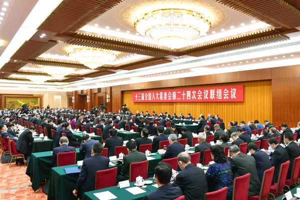 十三届全国人大常委会第二十四次会议26日上午在北京人民大会堂举行联组会议,审议国务院关于2019年度中央预算执行和其他财政收支审计查出问题整改情况的报告并开展专题询问。栗战书委员长出席并讲话。摄影/冯涛